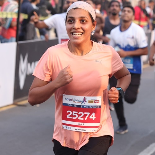 Name :VANI S Race TIME : 2:00:01 BIB : 25274